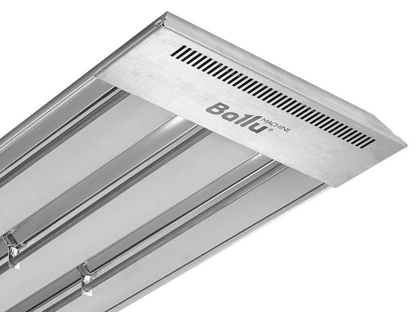 - Установка на потолке сохраняет свободу рабочей зоны и исключает возможность ожога;