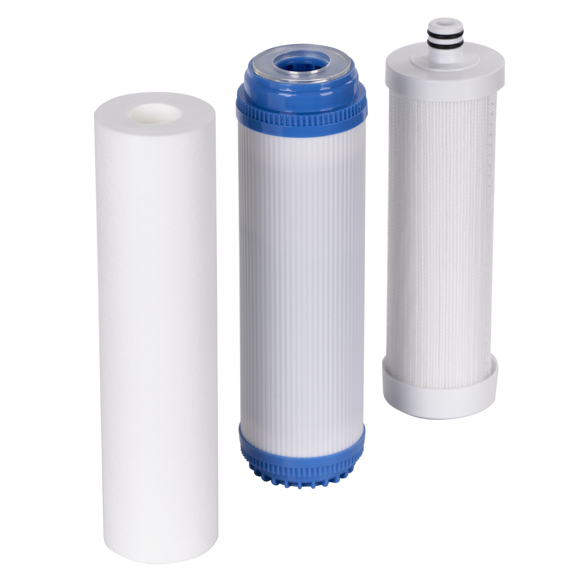 Механический фильтр с градиентной структурой. Срок службы увеличен на 30% по сравнению с аналогичными ступенями очистки. За счет градиентной структуры степень фильтрации меняется с 10 до 5мкм по мере прохождения воды через фильтр, что позволяет задействовать всю площадь фильтрующего элемента и распределить загрязнения более равномерно не забивая верхние слои.