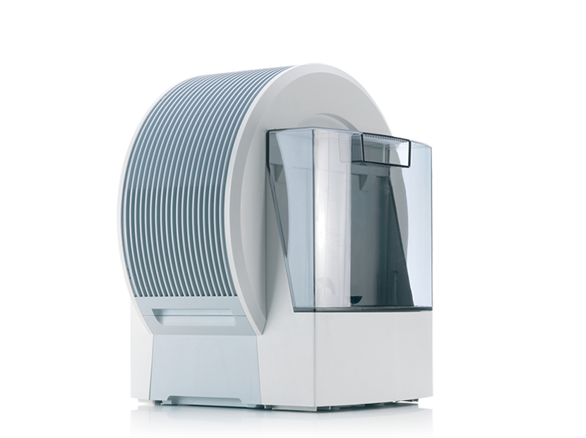 Система пластиковых дисков поднимает из резервуара воду и преобразует ее в мелкодисперсную водяную пыль. Полученная водяная баня не только увлажняет воздух, но и удаляет из него вредные частицы: пыль, грязь, пыльцу растений, частицы волос и шерсти животных и прочие аллергены.
